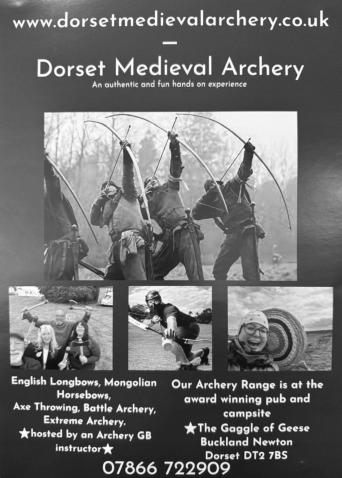 www.dorsetmedievalarchery.co.ukEaster Weekend-18th, 19th&20thApril –bring the kids along to enjoy the Gaggle gardens and follow clues on our Easter Treasure Hunt…. whilst you enjoy a drink and bite to eat!Pub Quiz-Wednesday23rdApril–ourpopularGagglepubquiz.Funeveningofhead scratchers,crypticcluesandgeneralknowledge.Teamsofupto6.£2perpersonorfreeifyou dine before the quiz. Booking required. Future quiz date Wednesday 30thAprilGaggle Birthday–Saturday3rdMay–join usincelebratinghavingbeenopenfor7years! Begreattoseethevillagecommunityforlive musicwithNinaGarciaandeveningfoodinthe garden.Summer Craft Fayre–Saturday 31stMay. Let Sarah know if you would like a stallGagglefest–Saturday26thJuly–ourannual familyfriendlymusicfestival.Ticketsonsale overthebarandviawww.ticketsource.co.uk/ gaggle