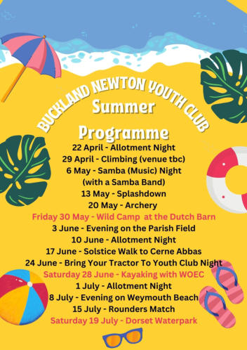 Friday 25th April - 10.30 am BUCKLAND NEWTON VILLAGE CAFÉHeld on the last Friday of every month in Buckland Newton Village Hall from 10.30 - 12 noon. £1.50 for tea/coffee and Cake.Opento everyone - locals andvisitors.Lyn Cox 01300 345739 Liza Hill01300 345230 ***********************************************************************************************************
