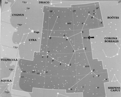 YOUR NIGHT SKY– JUNE 2025Our shortest nights are upon us, so observing the skyis a very late night pastime this month. However, the Moon is a good target when the sky is not totally dark. Planets are also good but we now only have Jupiter in our evening skies and it is well past its best. The early June evening skyis dominatedby the Moon. Around New Moon on June 25th will be the best time in June to view faint stellar objects. This is also the season of Noctilucent Clouds (NLCs). NLCs are very high altitude ice clouds at about 82km up in the atmosphere. They reflect the Sun’s light after sunset and appear to glow against the darker twilight sky when the ground is in darkness. They are often low on the northwest horizon so can be difficult to see in Buckland Newton but can also occasionally be higher in the sky.This month’s constellation is Hercules. To find it, face south and then look almost overhead. It is just to the west of the bright star Vega (the brightest star in that part of the sky). The constellation was named after the most famousof classical heroes. The interesting object for binocular observersin Hercules is M13, the brightest globular star cluster in our skies. Through binoculars itis a fuzzy patch andis very beautiful when viewed through a small telescope. It is marked with an arrow on this month’s sky chart. M92 is another globular star cluster but is smaller and fainter and not such a good sight through binoculars.