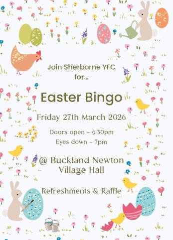 Buckland Newton Village Hall. Join Sherborne YFC for Easter Bingo.